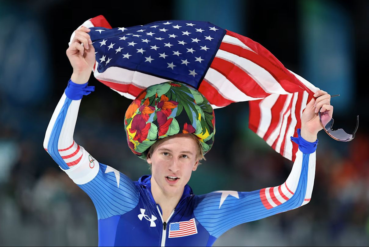 Конькобежный спорт. Мужчины. 1000 м. Американец Джордан Штольц выиграл золото на дистанции 1000 метров с новым олимпийским рекордом — 1 минута 6.28 секунды. Вторым стал Еннинг де Бо из Нидерландов (+0.50). Тройку призеров замкнул китаец Нин Чжунъянь (+1.06).